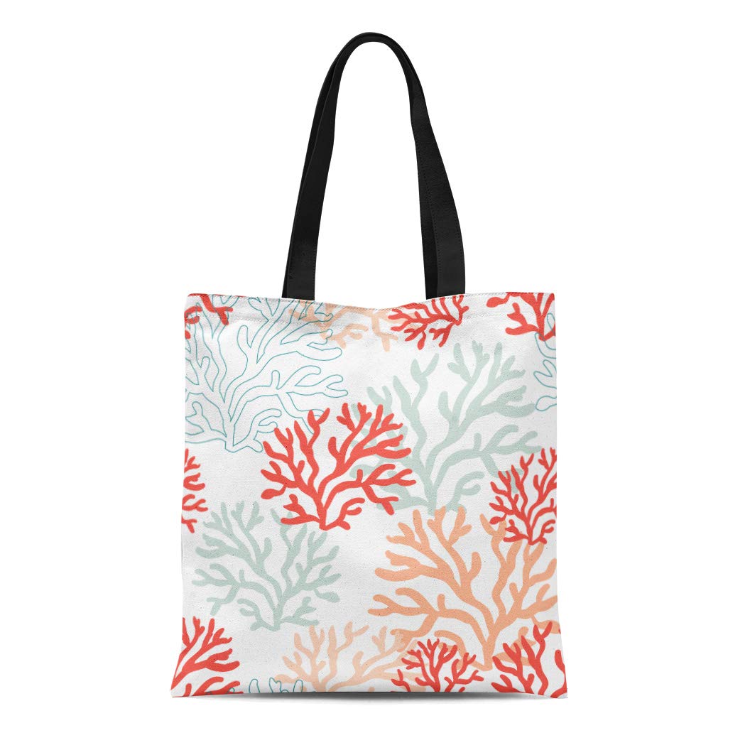 Sidonku Canvas Tote Bag Pattern Red Pink And Mint Corals Tropical Reef Nautical Reusable Shoulder Grocery Shopping Bags Handbag Walmart Com